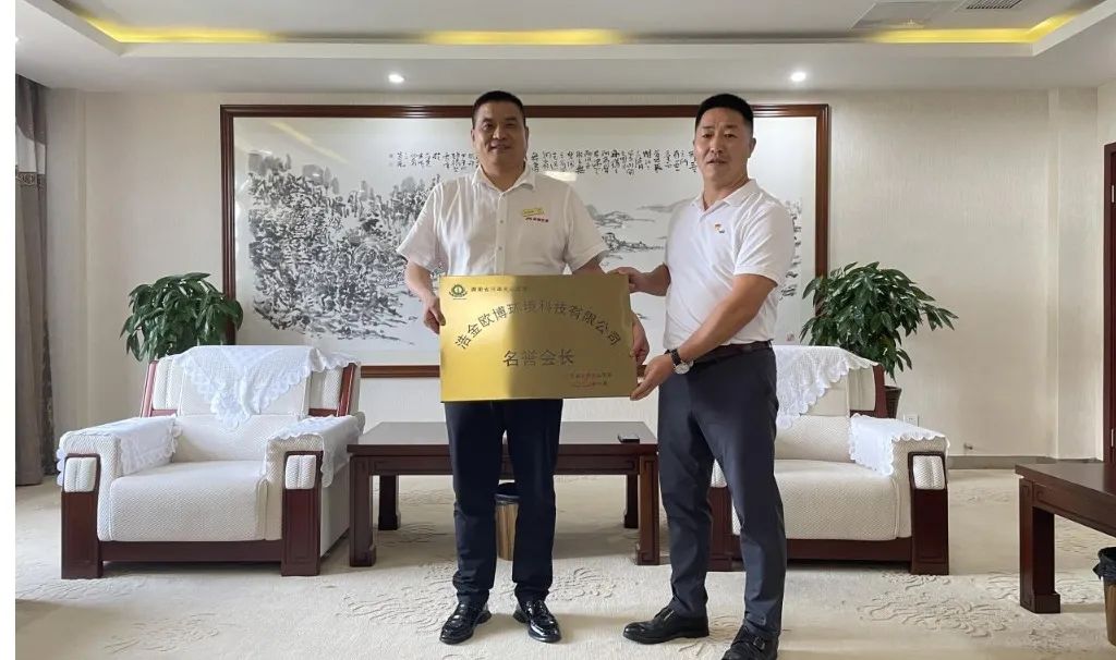 在贵宾接待室,吕会长为欧博董事长颁发“名誉会长”牌匾并颁发聘书 。