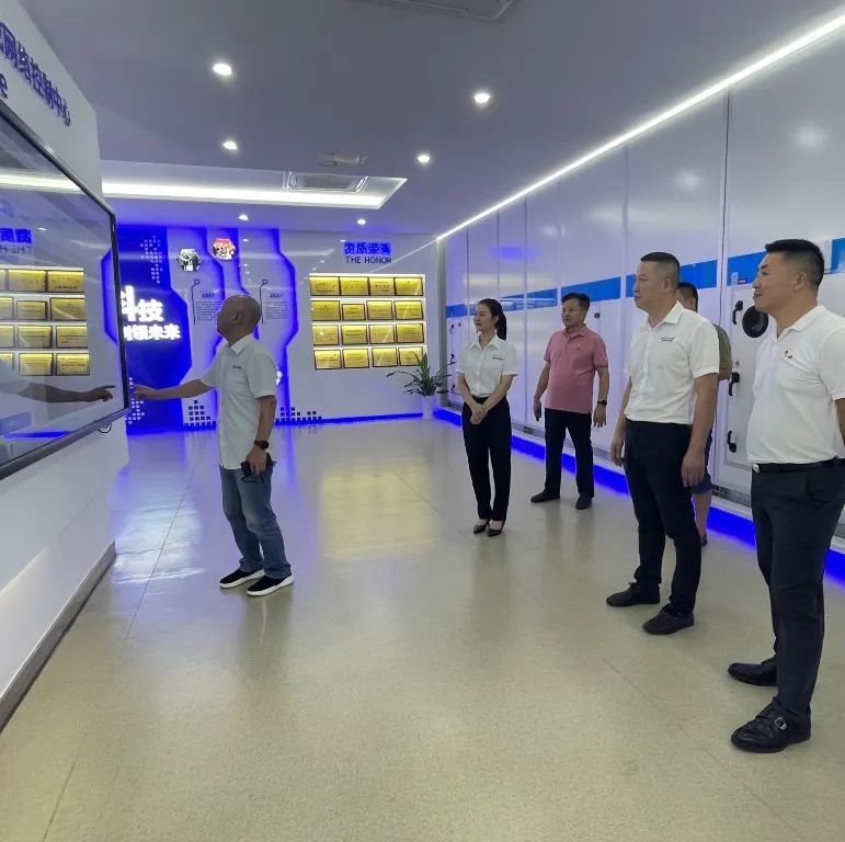 在董事长詹峻和副总经理潘委委的陪同下,首先参观了公司展厅、党员室、员工活动室以及现代化生产车间,并详细介绍了欧博的发展历程、荣誉资质、以及产品技术实力等。